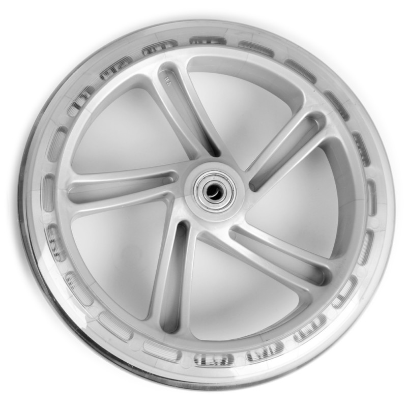 Roțile de schimb pentru trotinetă sunt utile atunci când roțile originale ale trotinetei se uzează ți trebuie înlocuite. Roțile sunt realizate din PU și sunt prevăzute cu rulmenți ABEC 5. Diametrul roților este de 200 mm. Setul conține 2 roți.