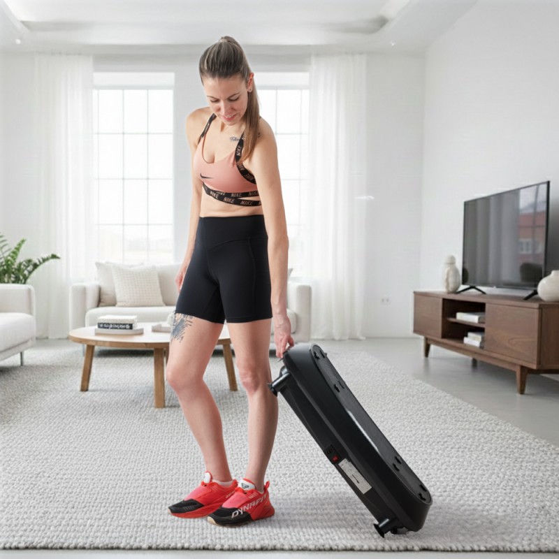 Platforma este compactă și ușor de depozitat, ideală chiar și pentru apartamente mai mici.