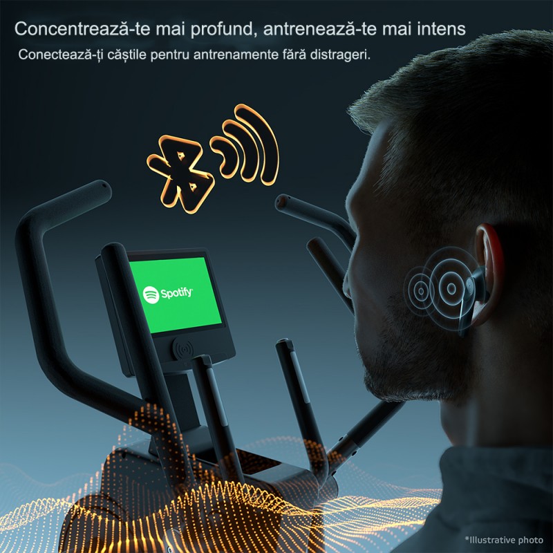 ZenStride 1200 vine preinstalat cu aplicația Kinomap, astfel încât poți explora imediat mii de trasee reale cu ghidaj video, ca și cum te-ai antrena în aer liber. În plus, conectivitatea Bluetooth îți permite să sincronizezi aparatul cu alte aplicații populare precum Zwift și FitShow, care oferă medii 3D, curse virtuale și planuri personalizate de antrenament. Iar dacă vrei să adaugi puțină distracție la antrenament, ecranul mare rulează fără probleme Netflix, Spotify, YouTube și alte aplicații preferate. Datorită funcției de screen mirroring și suportului pentru căști Bluetooth, antrenamentele tale devin complet imersive – iar telefonul se poate încărca wireless în același timp.
