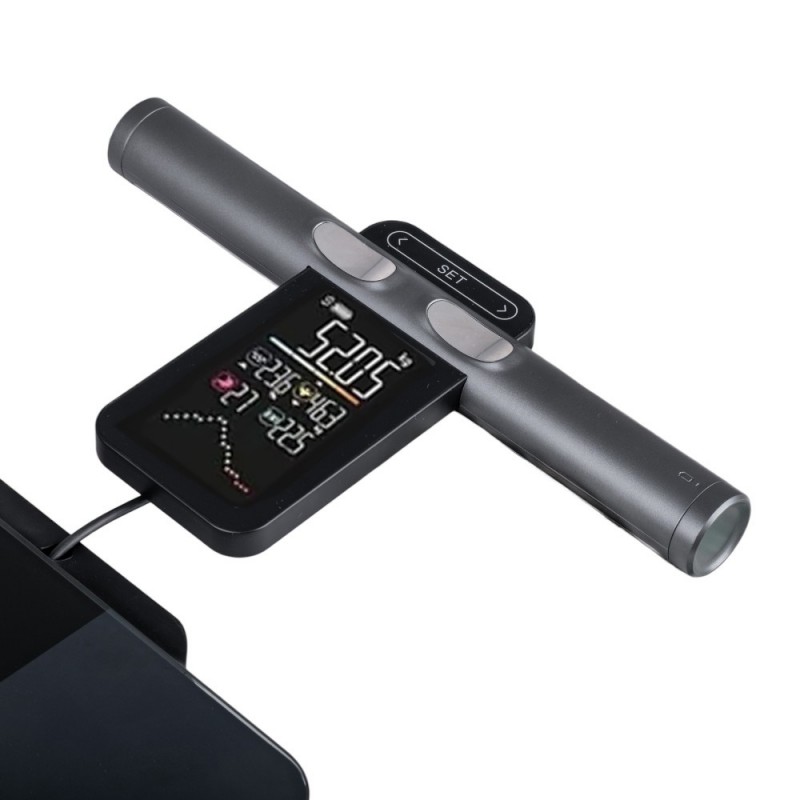 Datorită combinației de 8 electrozi (mâini + senzori pentru picioare), măsurătorile sunt mult mai precise decât cele ale unui cântar obișnuit, iar toate rezultatele cheie sunt afișate clar pe un ecran mare, color și intuitiv. Cântarul poate funcționa independent, în mod offline, fără a fi nevoie de smartphone sau aplicație. Toate acestea sunt integrate într-un design modern, cu platformă din sticlă securizată.
