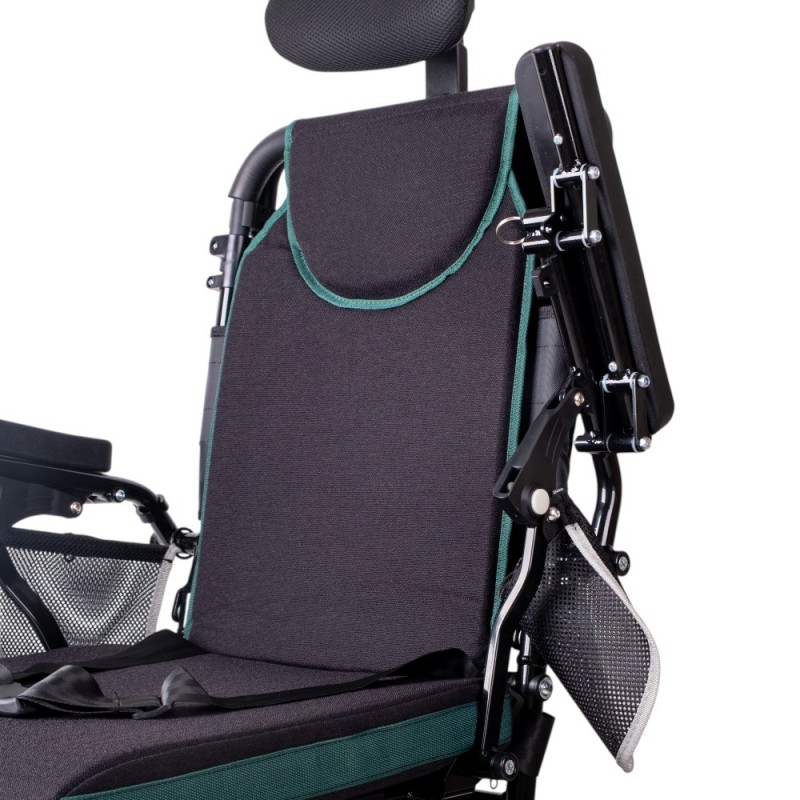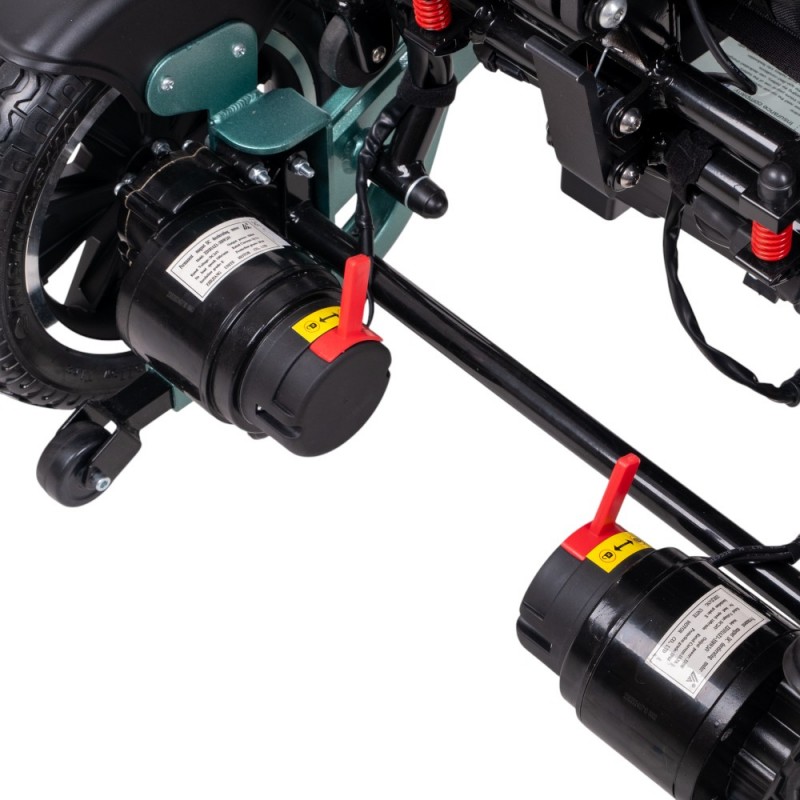 În plus, acest model oferă suport lombar reglabil electronic. Vei aprecia și tetierele reglabile pe înălțime, care pot fi ajustate în două poziții diferite. Scaunul este propulsat de două motoare de 350W pe roțile din spate. Spre deosebire de roțile din față, roțile spate sunt mai mari, ceea ce ajută la menținerea stabilității scaunului și îți permite să te deplasezi pe teren accidentat sau în urcare!