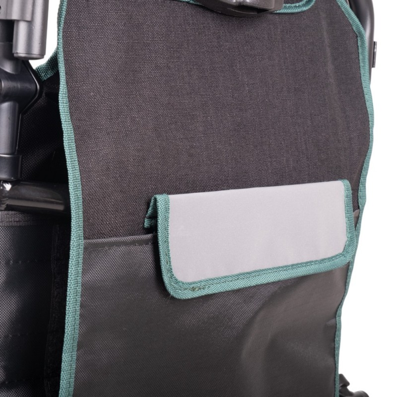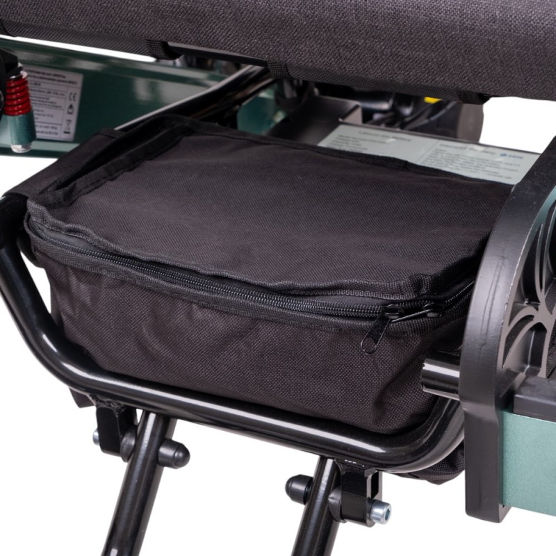 Un plus practic este geanta cu fermoar de la baza scaunului, în care poți depozita toate lucrurile esențiale.
