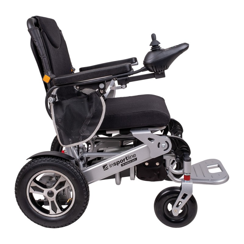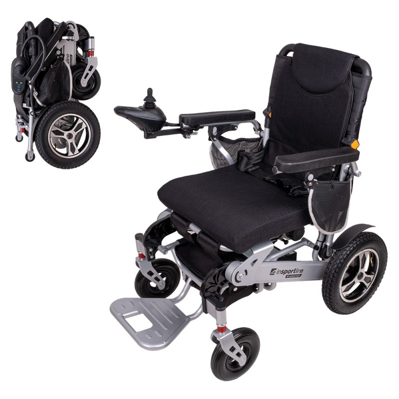 Scaunul cu rotile electric inSPORTline Hawkie II 700 W este un scaun confortabil, potrivit pentru persoanele cu mobilitate redusă. Datorită mecanismului de pliere, scaunul este ușor de depozitat și încape în portbagajul mașinii, permițându-ți să îl iei peste tot cu tine. Este propulsat de două motoare de 350W amplasate pe roțile din spate. Spre deosebire de roțile din față, cele din spate sunt mai mari, ceea ce ajută scaunul să își mențină stabilitatea în orice moment, permițându-ți astfel să te deplasezi pe teren denivelat sau în pantă.