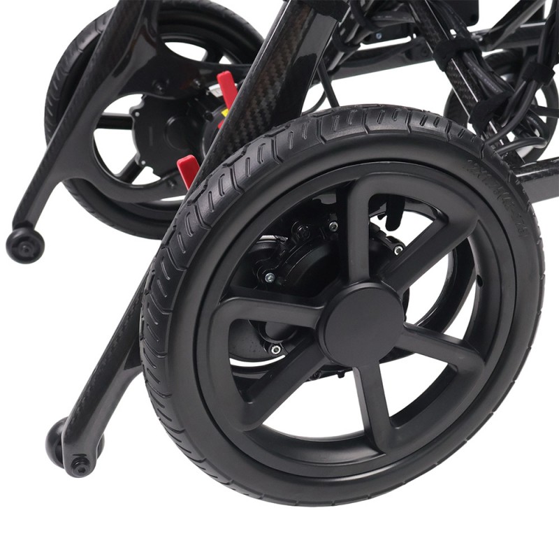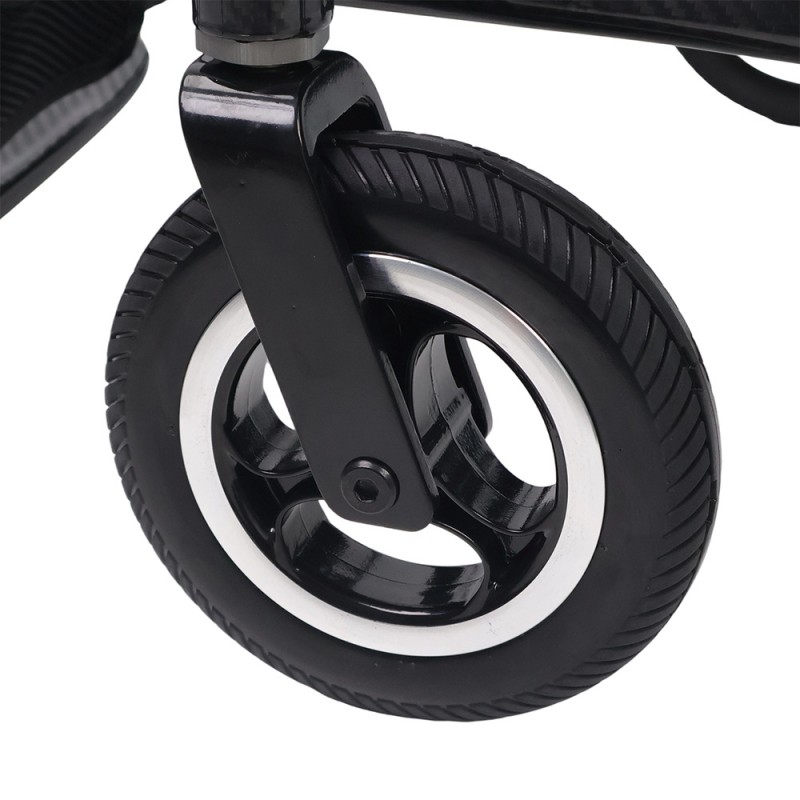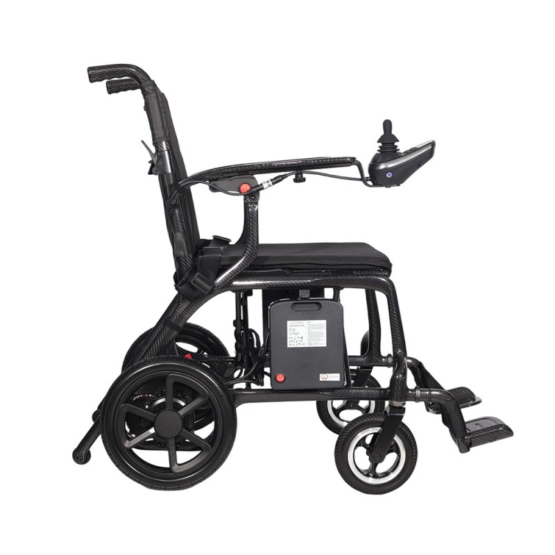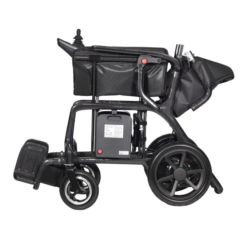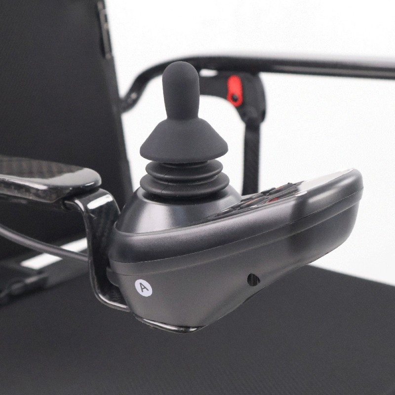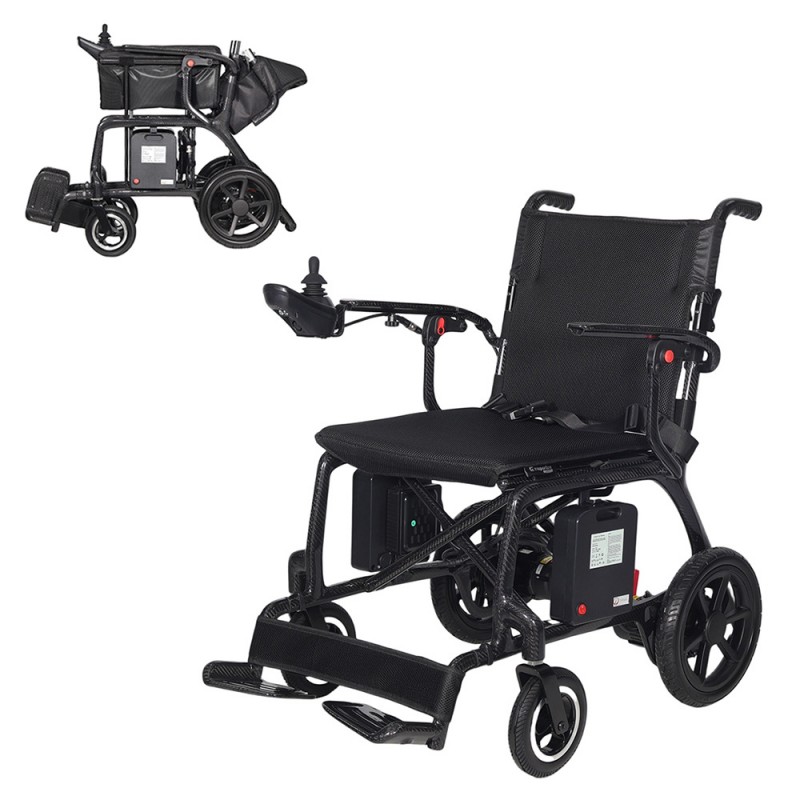 Scaun cu rotile electric, ușor de controlat, cu două motoare de 200W, cadrul din carbon ușor și manere rabatabile!