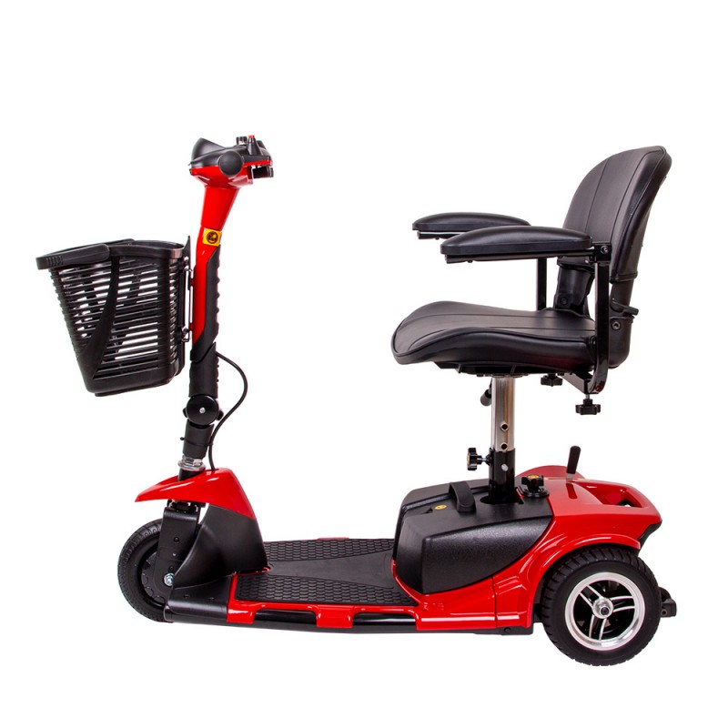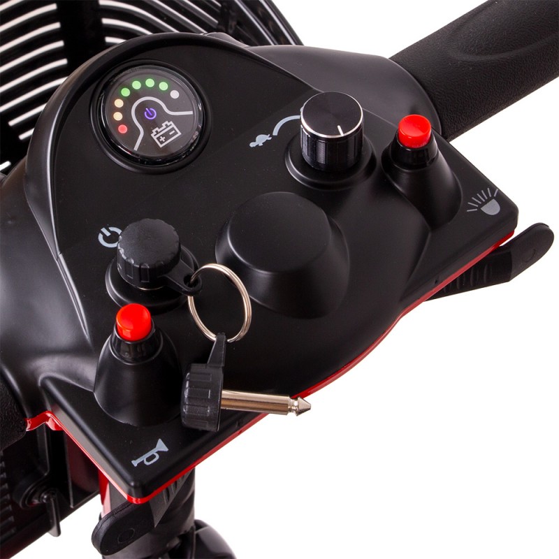Deoarece acest scuter are trei roți, va rămâne stabil chiar și pe teren denivelat. În plus, roțile sunt extrem de rezistente, astfel că nu trebuie să îți faci griji în privința unei pene de cauciuc. Utilizarea este foarte intuitivă – tot ce trebuie să faci este să introduci cheia în contact, să setezi viteza și ești gata de drum! Cu o viteză maximă de 6 km/h, acest scuter oferă o deplasare confortabilă și fără stres, care necesită foarte puțină frânare. Schimbarea direcției se face prin rotirea ghidonului, ceea ce face ca acest scuter să fie potrivit și pentru utilizatorii de scaune cu rotile.