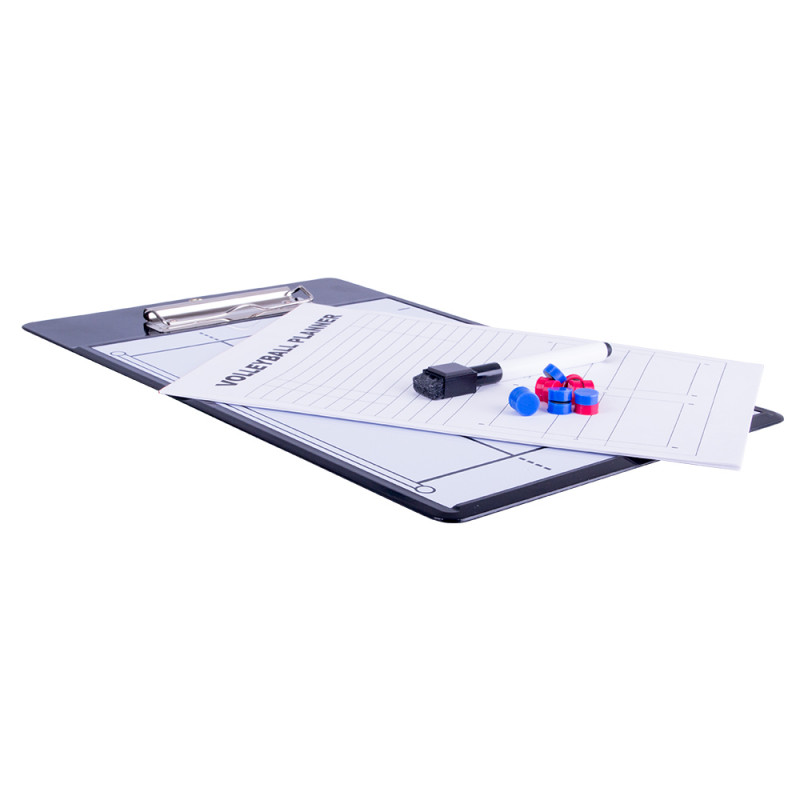 Tablă tactică pentru antrenorul de volei, magnetică, reversibilă, ușor de șters, rezistentă, material plastic, are marker inclus și 12 magneți.